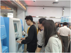 张海军副主任及相关工作人员热情地接待了我们,并带领同学们参观调研了行政服务大厅正在办公的部门,对一楼大厅的自助服务机器进行了详细的讲解,同学们实时操作了自助机器,体会到了自助机器为人们带来的便利,与新技术发展的新奇。